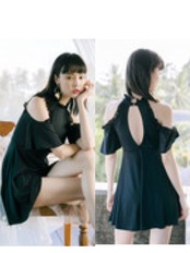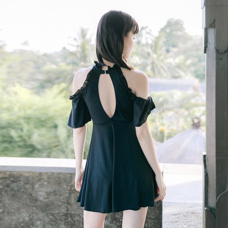 夏 レディース 水着 大きいサイズ ワンピース水着 ブラック 黒 セクシー フリル 半袖 ホルターネック オフショルダー リゾート 海 プール かわいい おしゃれ 韓国 きれいめ プチプラ FA-1347 | dress_sugar_moon