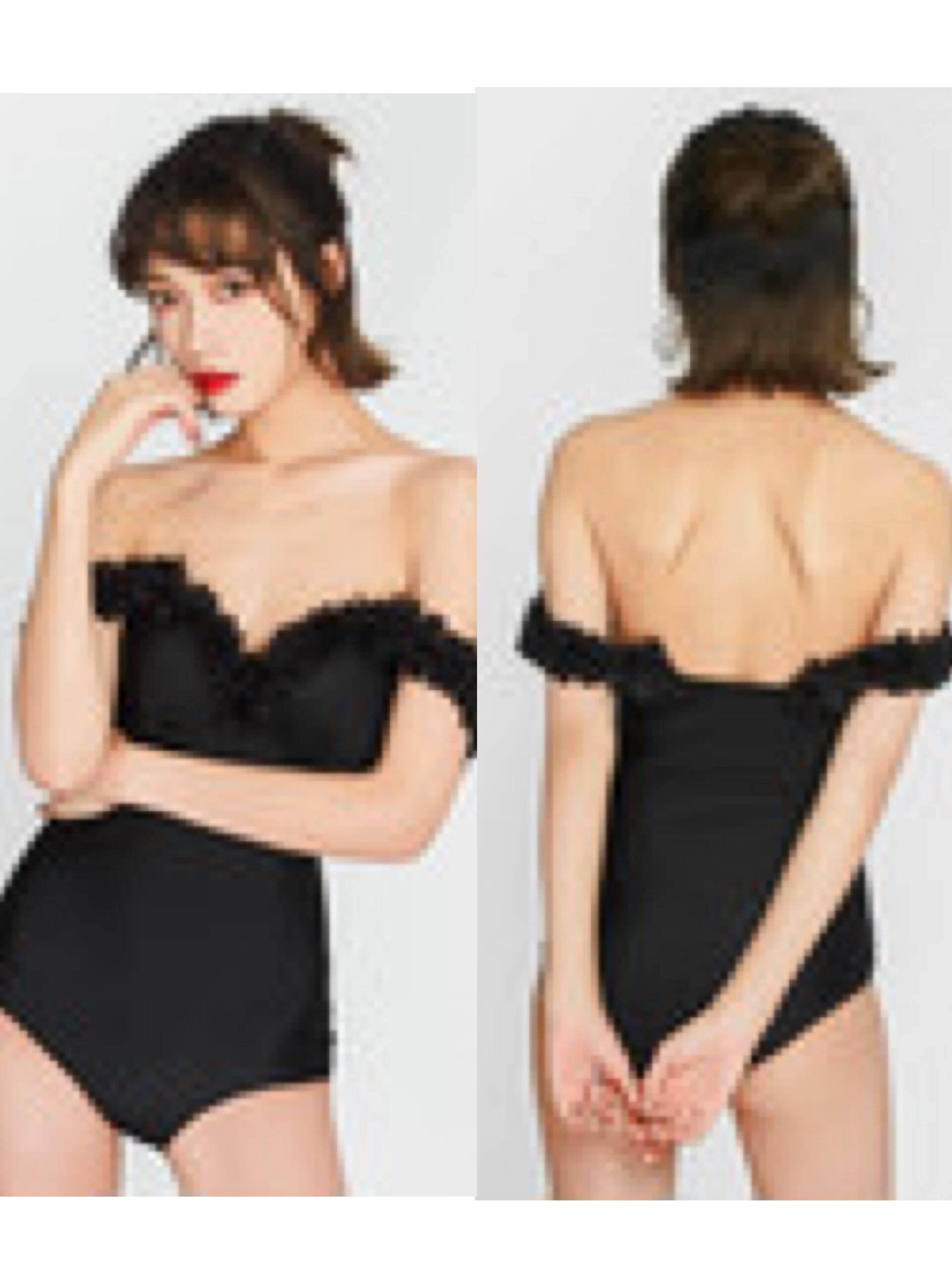 夏 レディース 水着 ワンピース水着 シンプル フリル オフショルダー ブラック 黒 リゾート 海 プール かわいい おしゃれ 韓国 きれいめ プチプラ FA-1352 | dress_sugar_moon