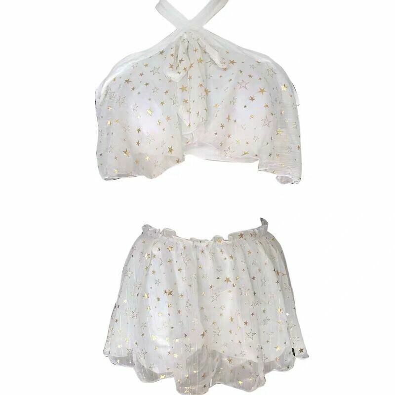 夏 レディース 水着 大きいサイズ ホワイト 白 星柄 きれいめ カジュアル ホルターネック オフショルダー リゾート 海 プール かわいい おしゃれ 韓国 きれいめ プチプラ FA-1360 | dress_sugar_moon