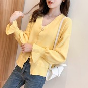 春 夏 レディース カーディガン 可愛い おしゃれ 上品 Vネック シンプル 紫外線予防 袖コンシャス 袖コン デート お出かけ 青 黄 桃 白 YN-6-223 | dress_sugar_moon