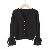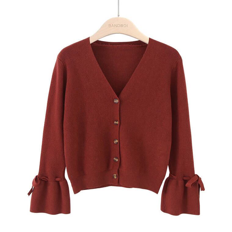 春 夏 レディース カーディガン 可愛い おしゃれ 上品 Vネック シンプル 紫外線予防 袖コンシャス 袖コン リボン デート お出かけ 黄 白 青 黒 ベージュ 赤 YN-6-224 | dress_sugar_moon