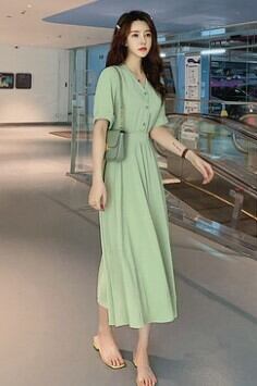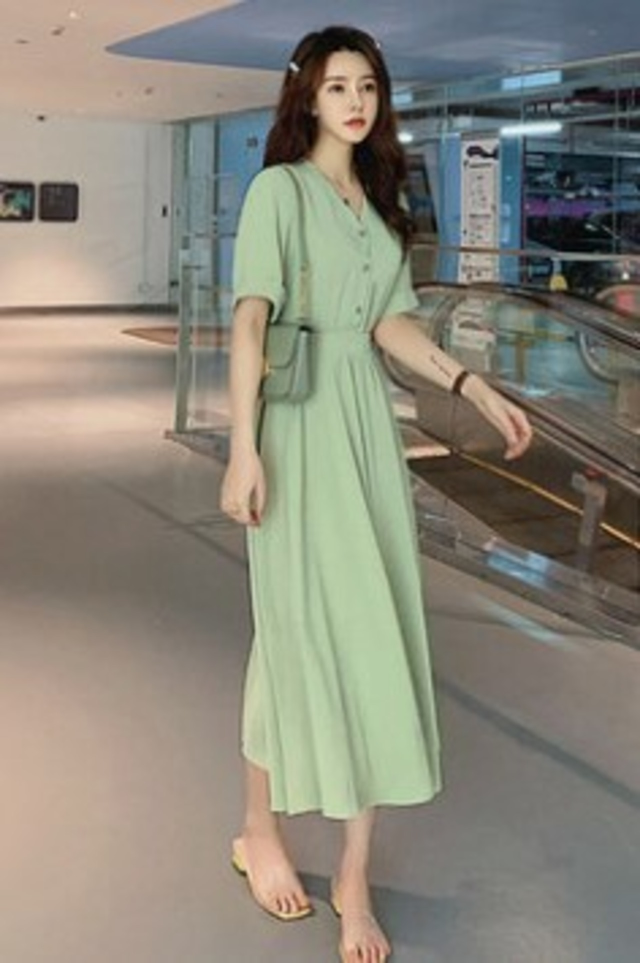 春 夏 レディース ワンピース グリーン 半袖 背中見せ ロング丈 シャツ シャツワンピース ロング丈 ロングワンピース リゾート 海 プール おしゃれ かわいい 韓国 きれいめ プチプラ SY-7-7 | dress_sugar_moon