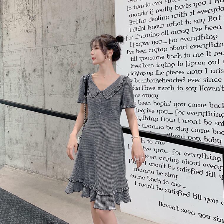 春 夏 レディース ワンピース 大きいサイズ ギンガムチェック チェック 白黒 ワンカラー フリル キュート 可愛い 原宿系 おしゃれ デート おでかけ YN-7-9 | dress_sugar_moon