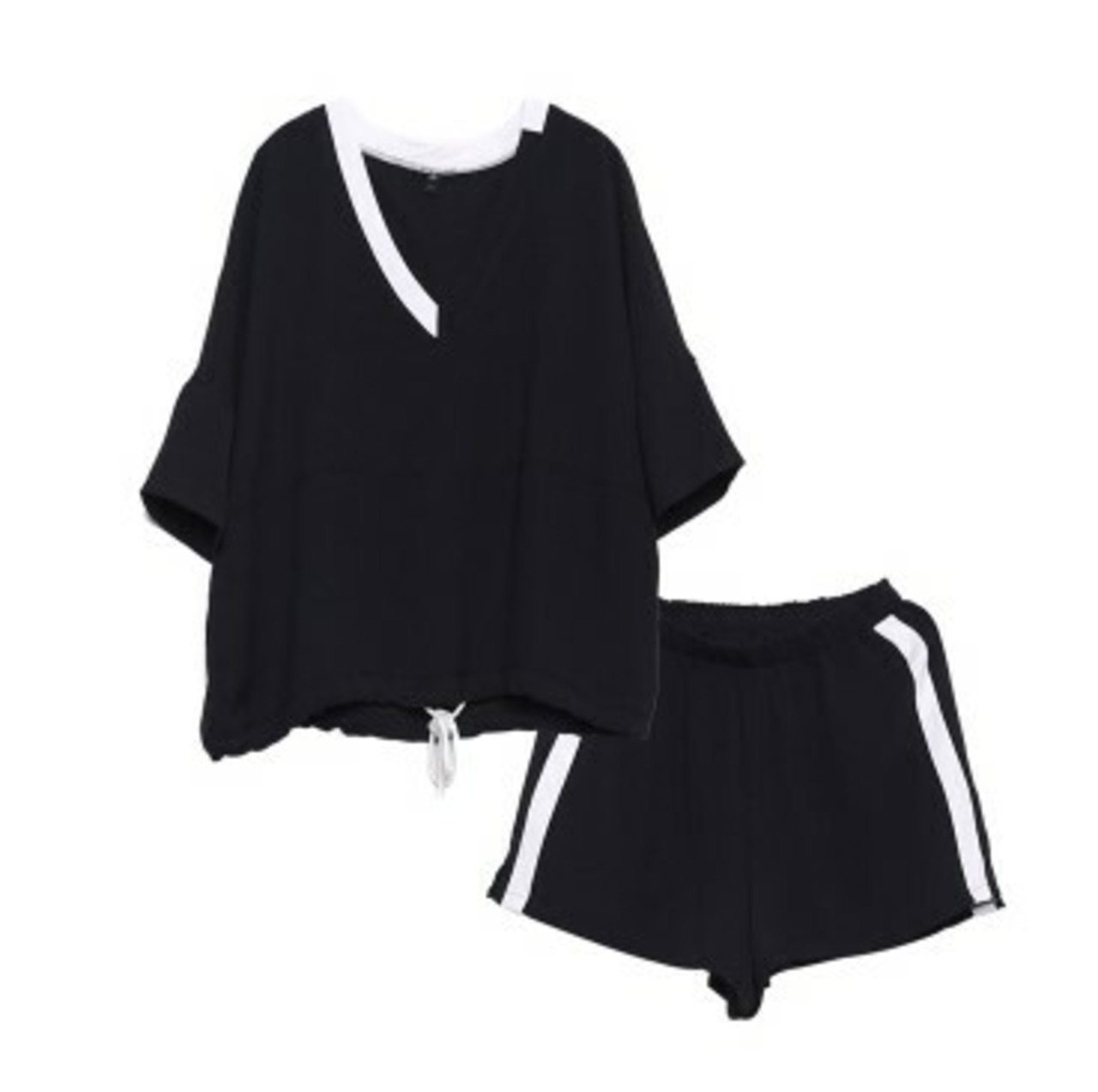 春 夏 レディース セットアップ ツーピース 上下セット 大きいサイズ ブラック 黒 半袖 ショートパンツ リゾート 海 プール おしゃれ かわいい 韓国 きれいめ プチプラ SY-7-21 | dress_sugar_moon