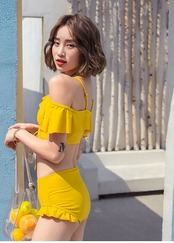 春 夏 レディース 水着 大きいサイズ 肩見せ オフショル イエロー 黄 水着 ビキニ 体型カバー リゾート 海 プール おしゃれ かわいい 韓国 きれいめ プチプラ SY-7-43 | dress_sugar_moon