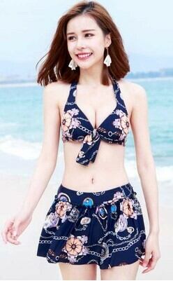 春 夏 レディース 水着 おおきいサイズ ブルー 青 体型カバー ワンピース 三点セット ビキニ リゾート 海 プール おしゃれ かわいい きれいめ プチプラ SY-7-65 | dress_sugar_moon