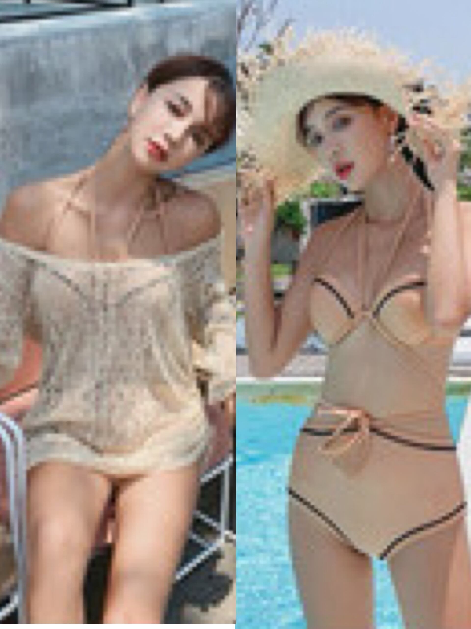 春 夏 レディース 水着 おおきいサイズ ベージュ 三点セット 体型カバー ワンピース ビキニ リゾート 海 プール おしゃれ かわいい 韓国 きれいめ プチプラ SY-7-70 | dress_sugar_moon