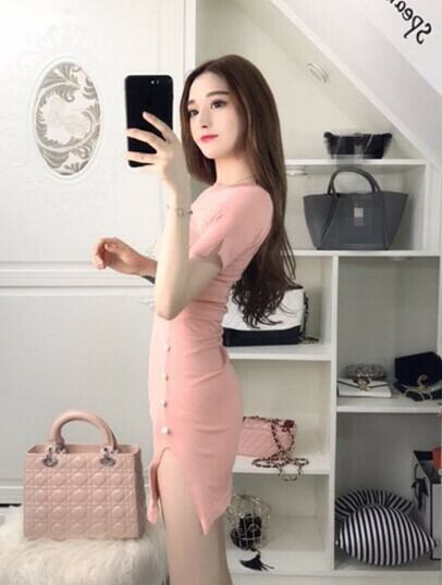 春 夏 レディース ワンピース ピンク 半袖 シャツ Tシャツ スリット Tシャツワンピース ミニワンピース リゾート 海 プール おしゃれ かわいい 韓国 きれいめ プチプラ SY-7-71 | dress_sugar_moon