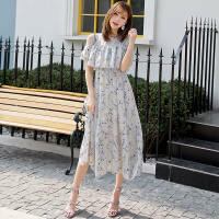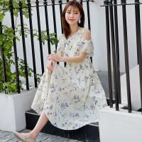 春 夏 レディース ワンピース ロング丈 ロングワンピース オフショルダー 肩出し ノースリーブ ラウンドネック フリル シンプル 花柄 可愛い 白 杏 灰 青 桃 YN-7-34 | dress_sugar_moon