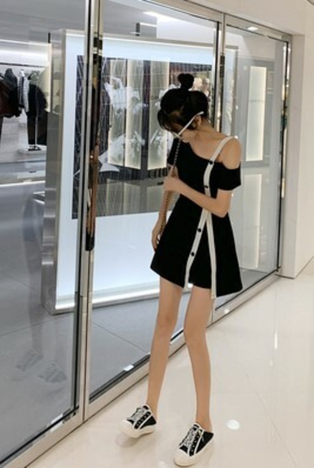 春 夏 レディース セットアップ ツーピース おおきいサイズ ブラック 黒 半袖 肩見せ ワンオフショル リゾート 海 プール おしゃれ かわいい 韓国 きれいめ プチプラ SY-7-88 | dress_sugar_moon