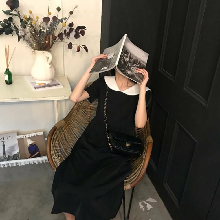 春 夏 レディース ワンピース 黒 ワンサイズ リボン バックリボン バックコンシャス ミドル丈 ヒザ下 シンプル レトロ 可愛い おしゃれ 原宿系 YN-7-72 | dress_sugar_moon