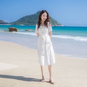 春 夏 レディース ワンピース 小さいサイズ シャツブラウス 白 ホワイト 半袖 ロング丈 ミディアム丈 リゾート 海 プール かわいい おしゃれ 韓国 きれいめ プチプラ FA-7-45 | dress_sugar_moon