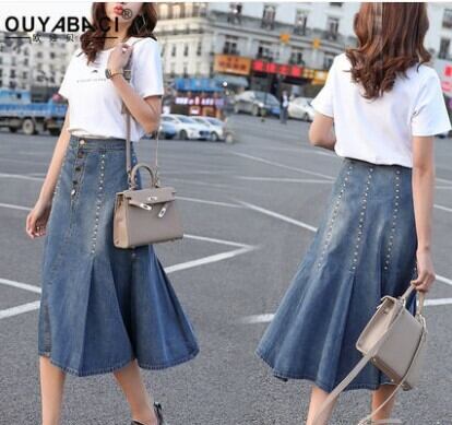 春 夏 レディース スカート 大きいサイズ ブルー 青 デニム ロング丈 デニムスカート ロングスカート リゾート 海 プール おしゃれ かわいい 韓国 きれいめ プチプラ SY-7-119 | dress_sugar_moon