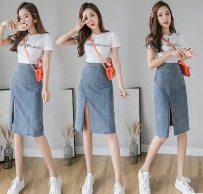 春 夏 レディース スカート デニム 青 ブルー 膝丈 スリット デニムスカート スカート 膝丈 リゾート 海 プール おしゃれ かわいい 韓国 きれいめ プチプラ SY-7-126 | dress_sugar_moon
