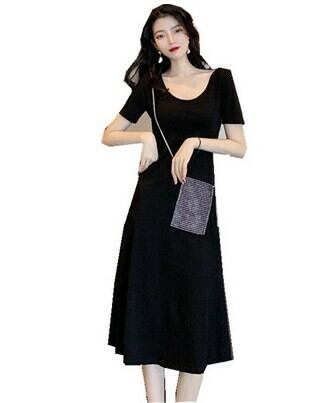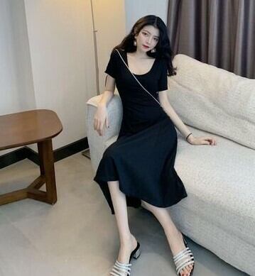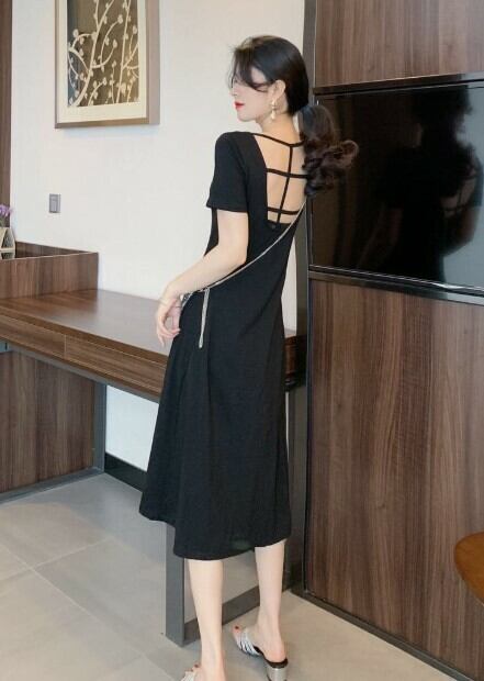 春 夏 レディース ワンピース 半袖 ブラック 黒 背中見せ Tシャツワンピース ロング丈 ロングワンピース リゾート 海 プール おしゃれ かわいい 韓国 きれいめ プチプラ SY-7-134 | dress_sugar_moon