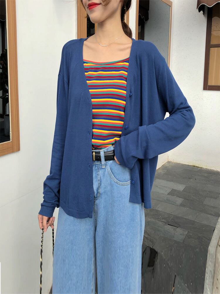 春 秋 レディース カーディガン トップス 長袖 Vネック シンプル 原色カラー 日焼け防止 エアコン除け リゾート 海 プール かわいい おしゃれ 韓国 きれいめ プチプラ FA-7-99 | dress_sugar_moon