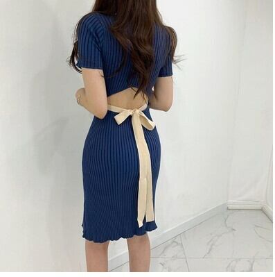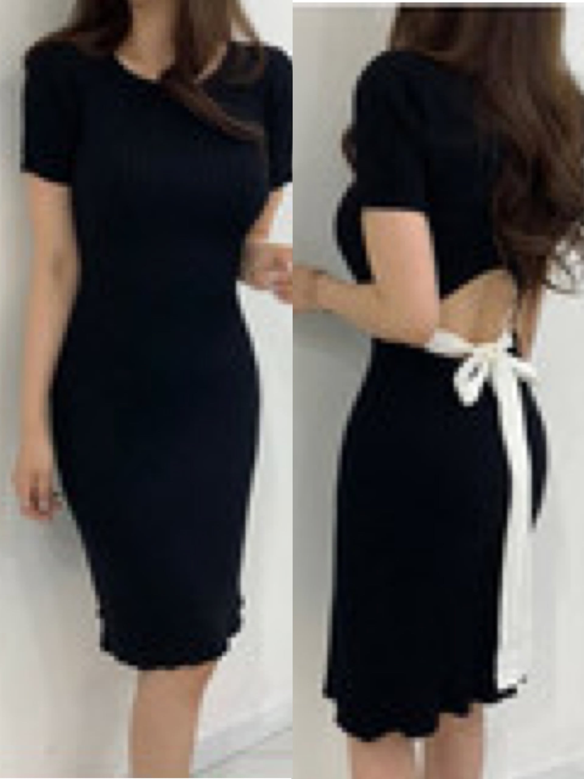 秋 冬 レディース ワンピース 2色 ニット 半袖 タイト 背中見せ 膝上 ニットワンピース 背中見せワンピース タイトワンピース 膝上ワンピース かわいい 韓国 きれいめ プチプラ SY-7-174 | dress_sugar_moon