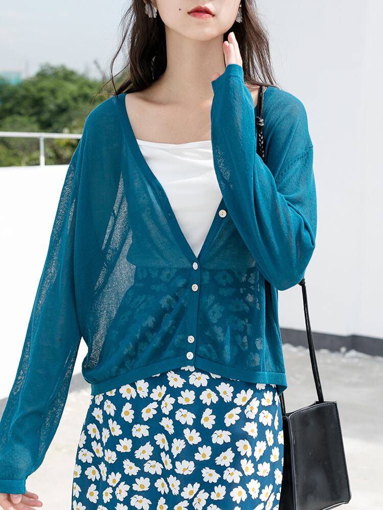 春 秋 レディース カーディガン トップス ソリッドカラー 緩い Vネック 日焼け防止 エアコン除け リゾート 海 プール かわいい おしゃれ 韓国 きれいめ プチプラ FA-7-101 | dress_sugar_moon