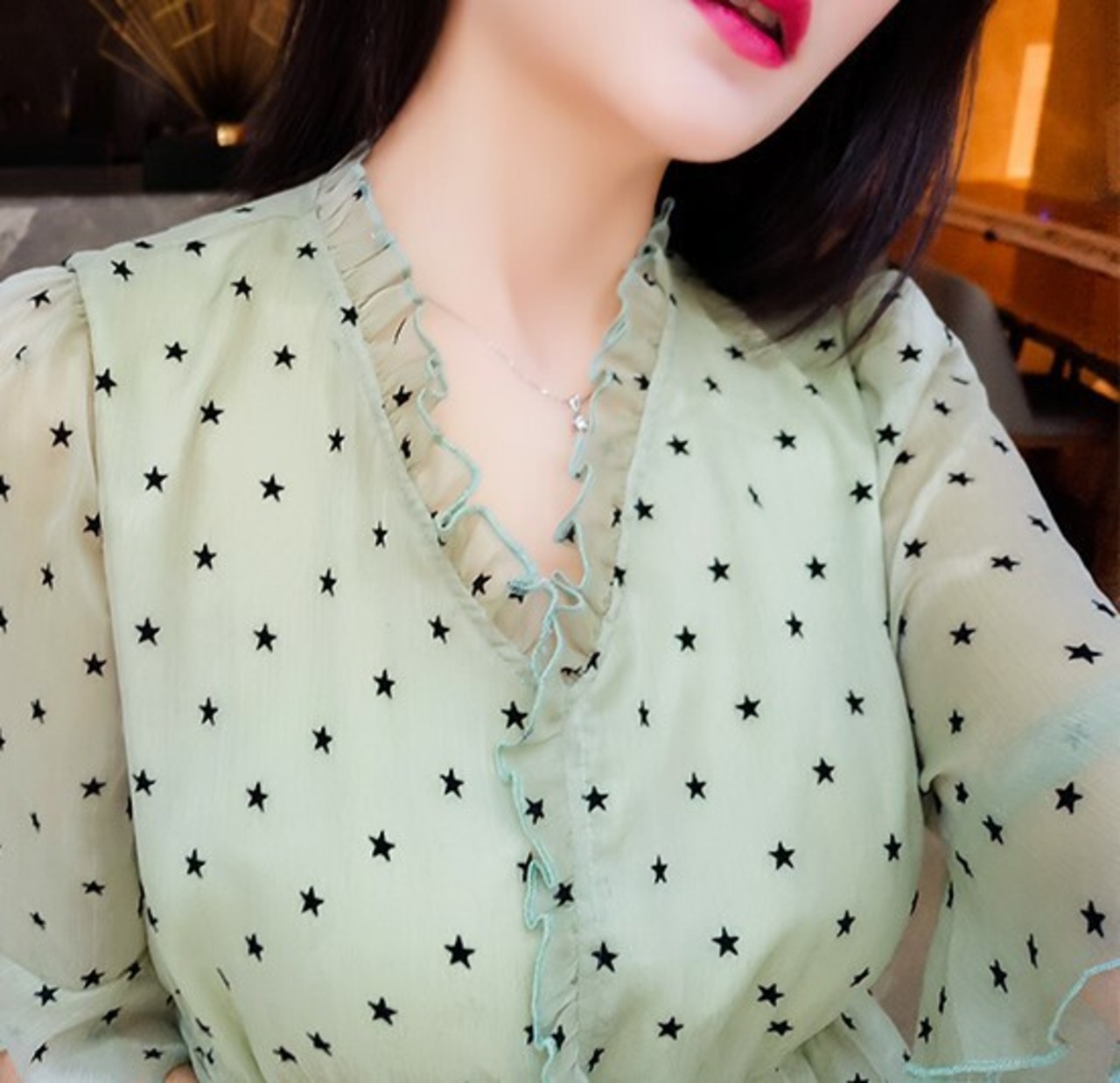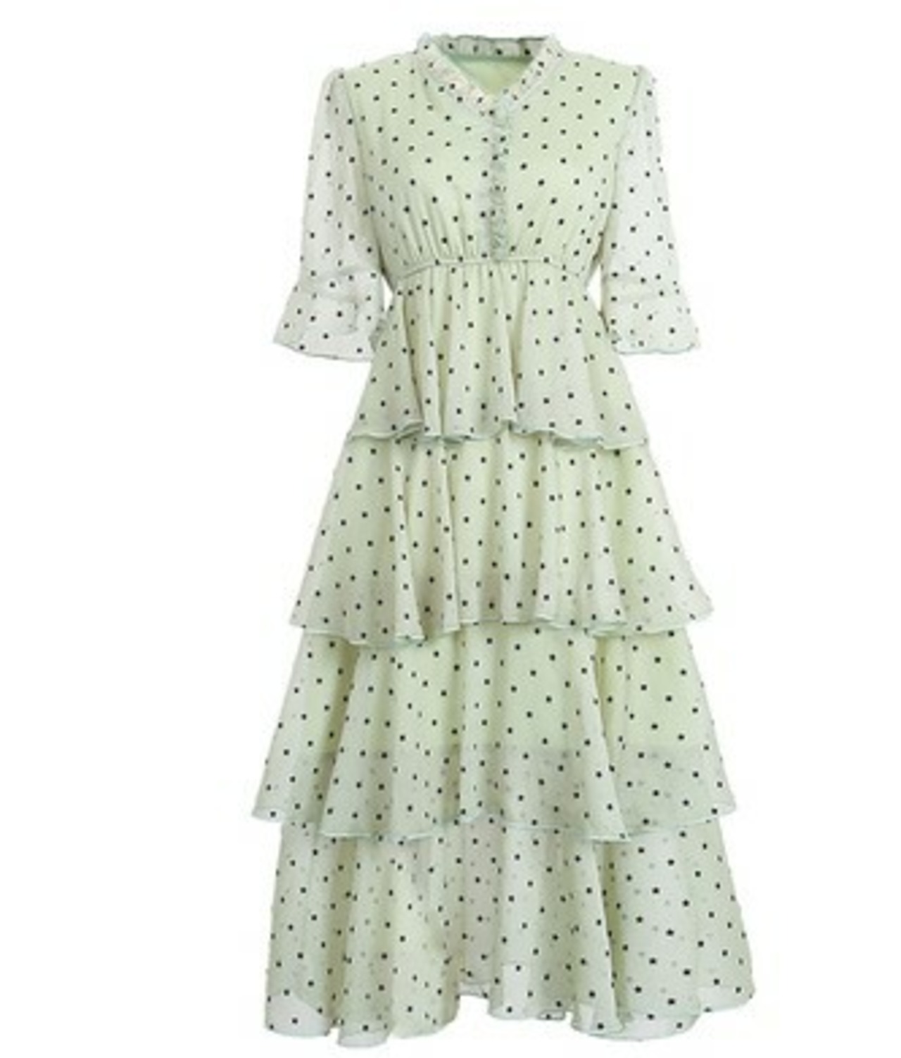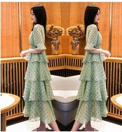 夏 秋 レディース ワンピース 大きいサイズ グリーン 緑 半袖 Ⅴネック ロング丈 星 ロングワンピース おしゃれ かわいい 韓国 きれいめ プチプラ SY-8-68 | dress_sugar_moon
