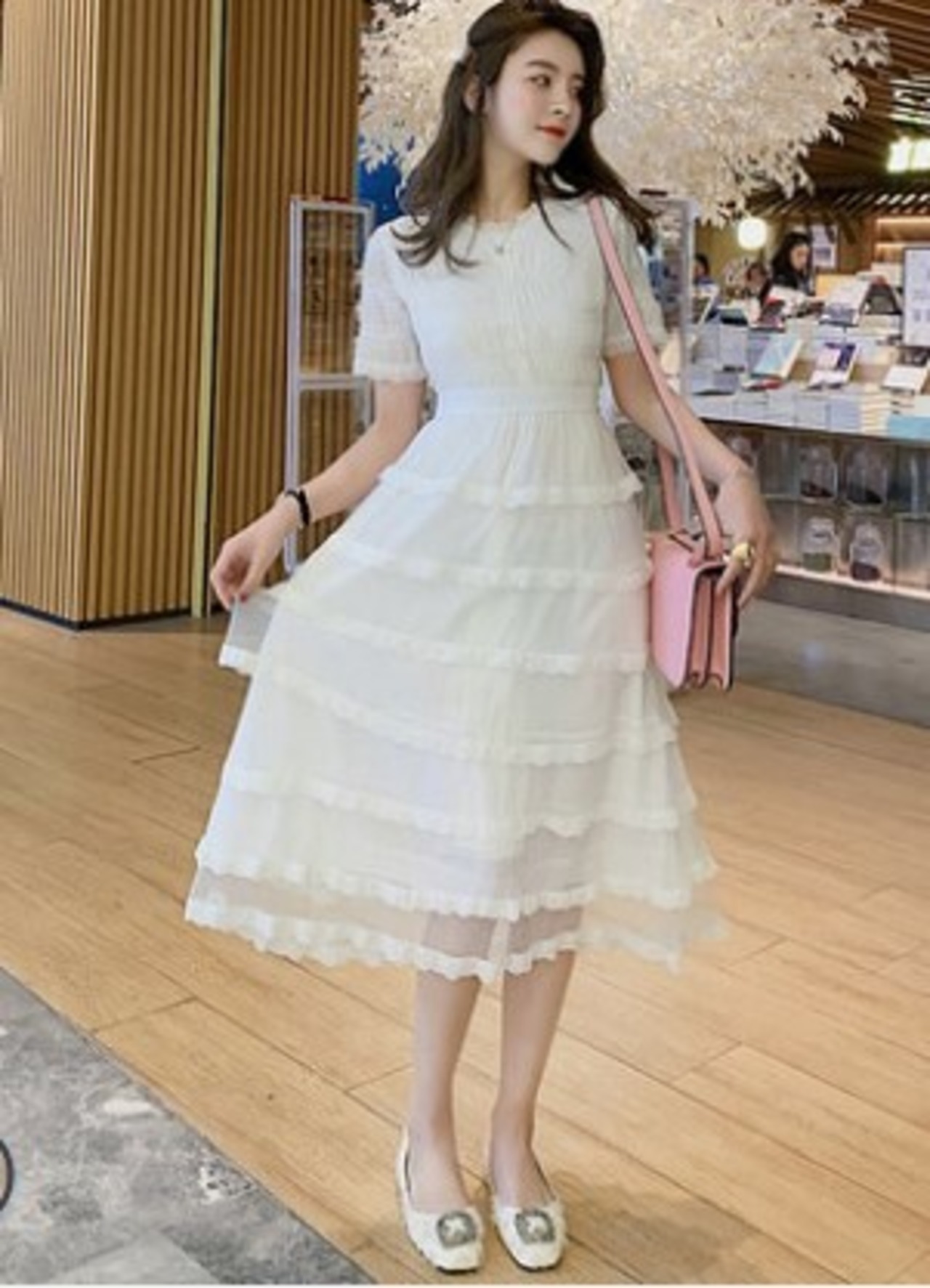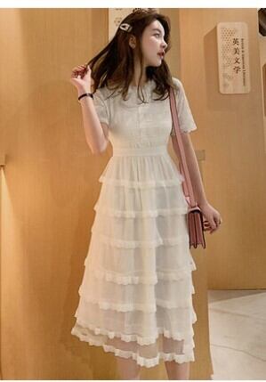 夏 秋 レディース ワンピース 大きいサイズ 2色 半袖 ロング丈 フリル ロングワンピース フリルワンピース おしゃれ かわいい 韓国 きれいめ プチプラ SY-8-71 | dress_sugar_moon