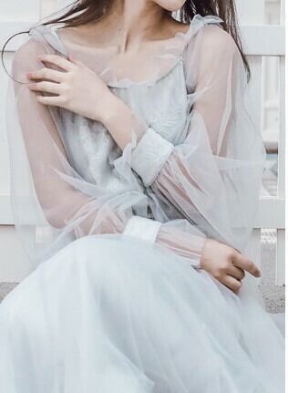 夏 秋 レディース ドレス ワンピース ブルー 透け感 シースルー 長袖 ロング丈 お呼ばれ パーティードレス ロングワンピース ドレスワンピース おしゃれ かわいい 韓国 きれいめ プチプラ SY-8-81 | dress_sugar_moon