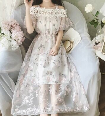 夏 秋 レディース ドレス ワンピース 2色 肩見せ 花柄 透け感 シースルー ロング丈 お呼ばれ パーティードレス ロングワンピース ワンピースドレス おしゃれ かわいい 韓国 きれいめ プチプラ SY-8-83 | dress_sugar_moon