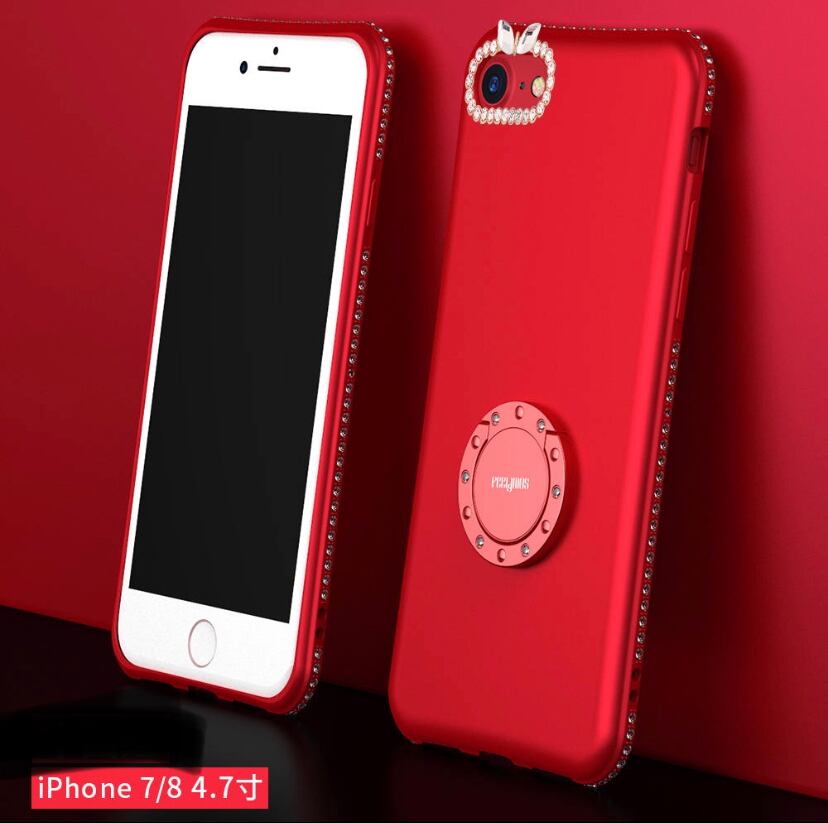 iPhone ケース カバー スマホケース シンプル 可愛い パープル レッド リング付き 落下防止 キラキラ 高級感 iPhone 7 8 7plus 8plus X YN-8-29 | dress_sugar_moon