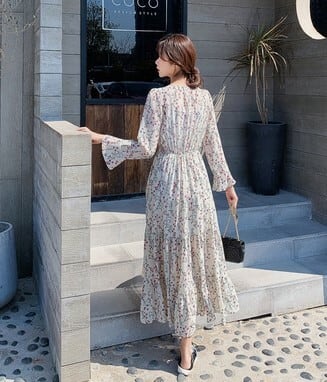 夏 秋 レディース ワンピース 大きいサイズ ホワイト 白 長袖 花柄 フリル ロング丈 フリルワンピース 花柄ワンピース ロングワンピース おしゃれ かわいい 韓国 きれいめ プチプラ SY-8-124 | dress_sugar_moon