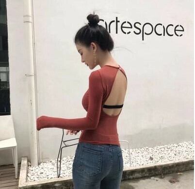 秋 冬 レディース シャツ ブラウス 3色 背中あき タイト トップス かわいい トップス 長袖 背中見せトップス タイトトップス おしゃれ かわいい 韓国 きれいめ プチプラ SY-8-160 | dress_sugar_moon