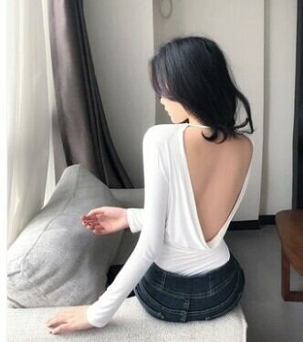 秋 レディース シャツ ブラウス 2色 Tシャツ 背中見せ タイト トップス かわいい トップス 長袖 背中見せトップス タイトトップス おしゃれ かわいい 韓国 きれいめ プチプラ SY-8-163 | dress_sugar_moon