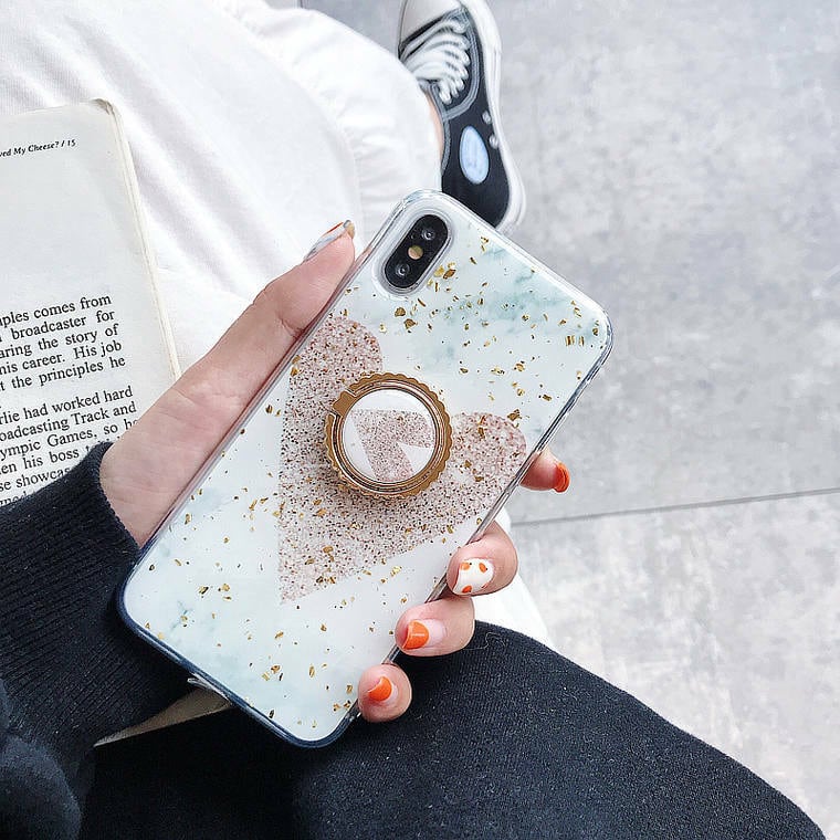 iPhone ケース カバー スマホケース シンプル 可愛い リング リング付き 落下防止 ハート 三角 大理石 キラキラ ラメ 金箔 iPhone 6 6s 6plus 6splus 7 8 7plus 8plus X XS XR Xsmax YN-8-133 | dress_sugar_moon