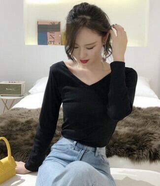 秋 冬 レディース シャツ ブラウス 2色 背中あき バックリボン Ⅴネック トップス かわいい トップス 長袖 背中あきトップス おしゃれ かわいい 韓国 きれいめ プチプラ SY-8-203 | dress_sugar_moon