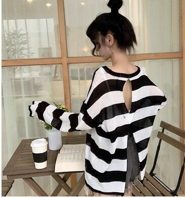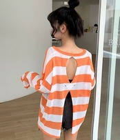 夏 秋 レディース シャツ ブラウス 3色 ボーダー 背中あき トップス かわいい トップス長袖 背中あきトップス おしゃれ かわいい 韓国 きれいめ プチプラ SY-8-213 | dress_sugar_moon