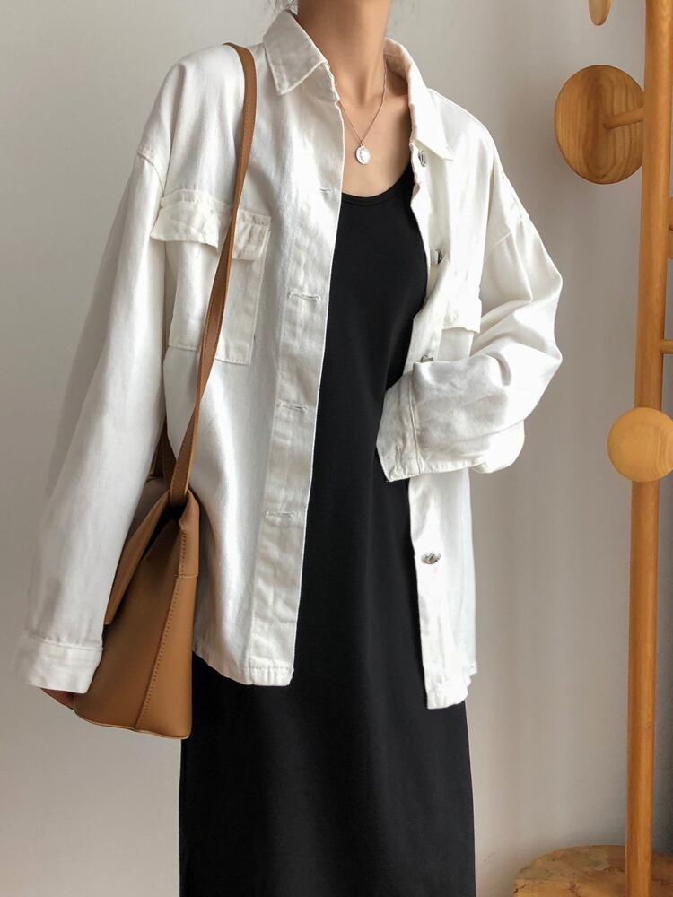 春 秋 冬 レディース ジャケット アウター デニム生地 ソリッドカラー シンプル 長袖 カジュアル かわいい おしゃれ 韓国 きれいめ プチプラ FA-8-76 | dress_sugar_moon