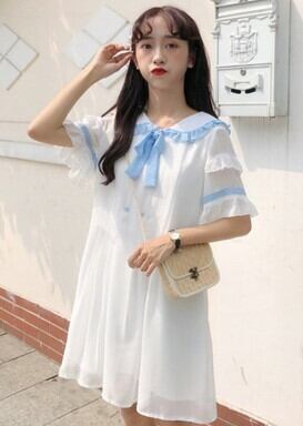 夏 秋 レディース ワンピース ホワイト 白 半袖 襟付き 膝丈 襟付きワンピース シャツワンピース ミニワンピース おしゃれ かわいい 韓国 きれいめ プチプラ SY-8-223 | dress_sugar_moon