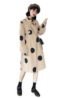 秋 冬 レディース ワンピース 大きいサイズ ブラウン 長袖 襟付き ロング丈 ドット柄 襟付きワンピース シャツワンピース ロングワンピース おしゃれ かわいい 韓国 きれいめ プチプラ SY-8-225 | dress_sugar_moon