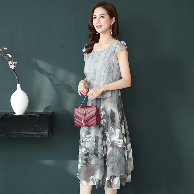 春 夏 レディース ワンピース グレー ワンカラー 花がら ノースリーブ おしゃれ きれいめ 大人 パーティー 普段着 デート お呼ばれ 結婚式 披露宴 YN-8-173 | dress_sugar_moon