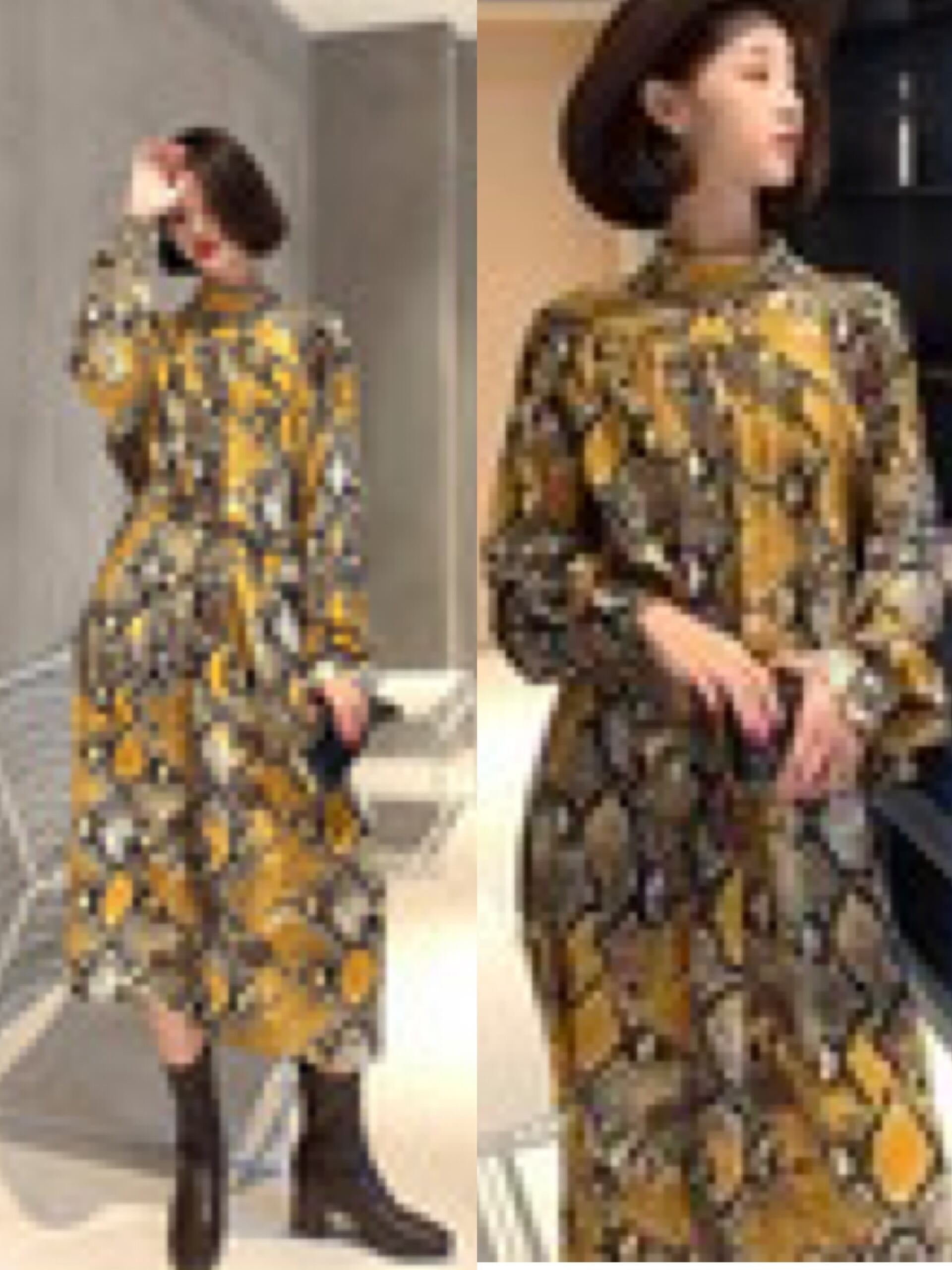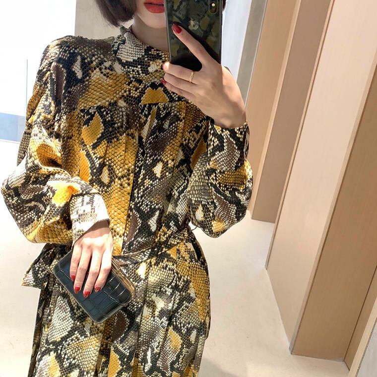 秋 冬 レディース ワンピース 長袖 ロング マキシ丈 ヘビ柄 パイソン 大人 かっこいい きれいめ ユニーク ボトルネック 3サイズ S M L 個性的 YN-8-201 | dress_sugar_moon