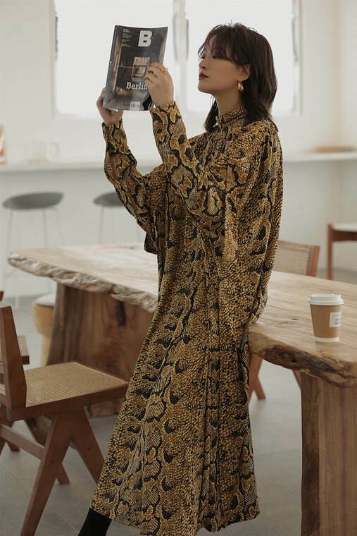 ヘビ柄がおしゃれでかっこいいロングワンピース♪