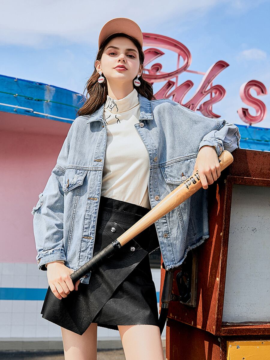 春 秋 冬 レディース ジャケット アウター デニムジャケット デニムカラー 長袖 ルーズ ボーイフレンド カジュアル かわいい おしゃれ 韓国 きれいめ プチプラ FA-8-137 | dress_sugar_moon
