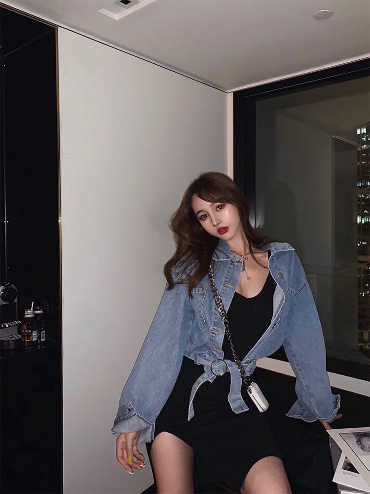 春 秋 冬 レディース ジャケット アウター デニムジャケット デニムカラー ショート丈 ミニ丈 カジュアル ポート風 レトロ BF かわいい おしゃれ 韓国 きれいめ プチプラ FA-8-162 | dress_sugar_moon