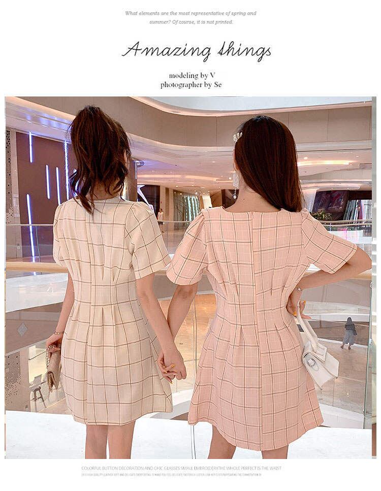 春 夏 レディース ワンピース 大きいサイズ ミニ丈 半袖 Vネック おしゃれ チェック 格子 黄 青 桃 3カラー シンプル 清楚 きれいめ デート おでかけ キャンバス YN-8-232 | dress_sugar_moon