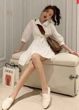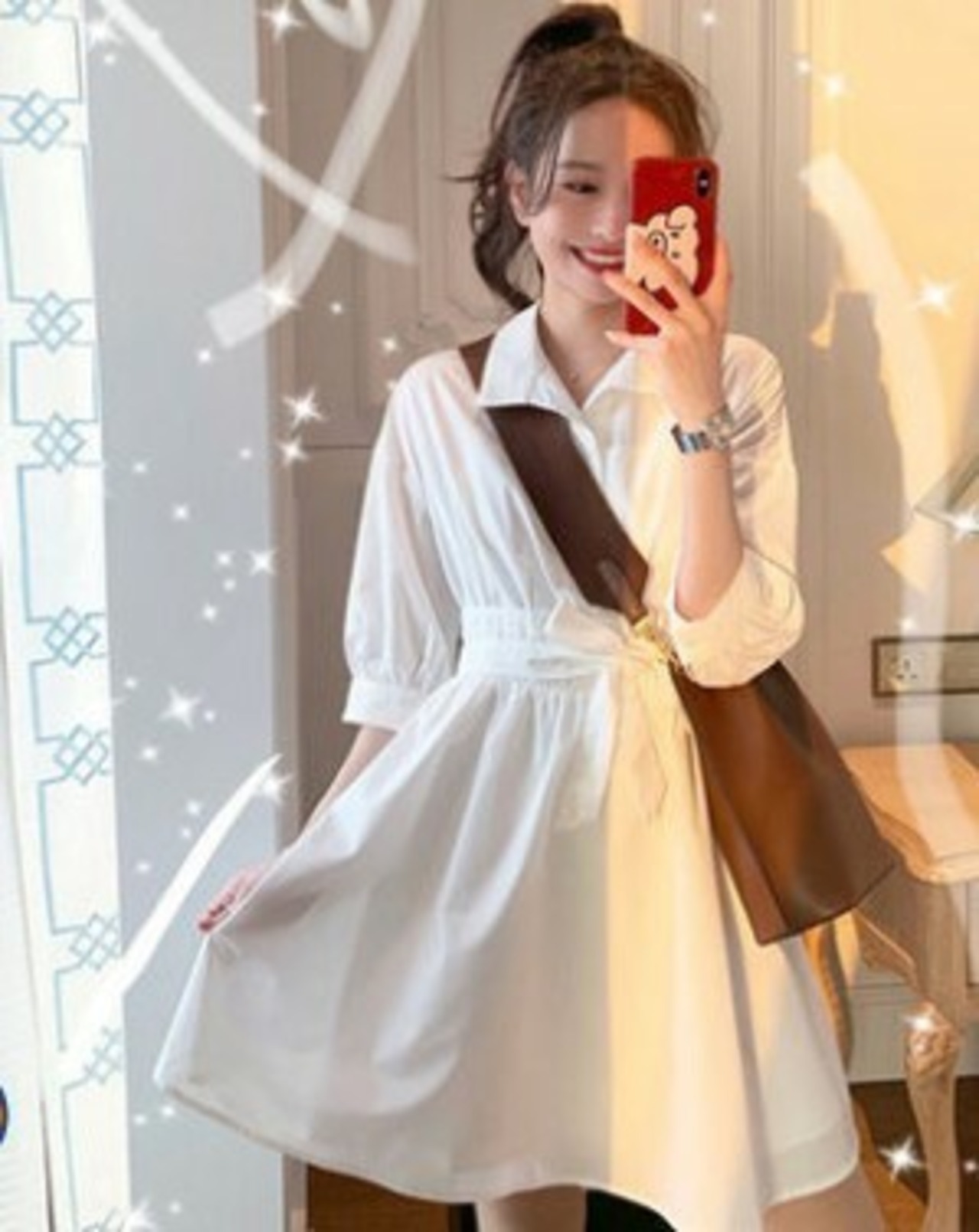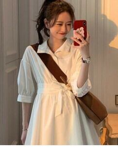 秋 冬 レディース ワンピース 大きいサイズ ホワイト 白 シャツ 長袖 襟付き ミニ丈 シャツワンピース 襟付きワンピース ミニワンピース おしゃれ かわいい 韓国 きれいめ プチプラ SY-8-295 | dress_sugar_moon