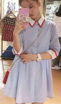 秋 冬 レディース ワンピース 大きいサイズ ブルー 青 シャツ 襟付き 七分丈 ミニ丈 シャツワンピース 襟付きワンピース ミニワンピース おしゃれ かわいい 韓国 きれいめ プチプラ SY-8-298 | dress_sugar_moon