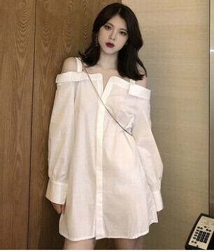 秋 冬 レディース ワンピース 大きいサイズ 2色 肩見せ オフショル 長袖 シャツ 襟付き ミニ丈 襟付きワンピース シャツワンピース ミニワンピース オフショルワンピース おしゃれ かわいい 韓国 きれいめ プチプラ SY-8-300 | dress_sugar_moon