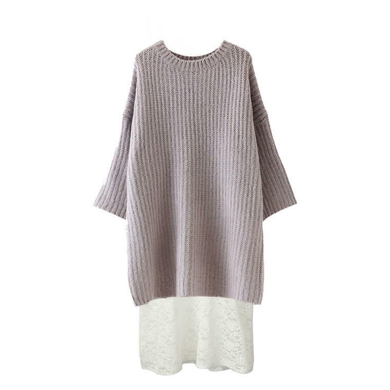 秋 冬 レディース ワンピース セットアップ ニット レース おしゃれ シンプル カジュアル ゆったり 体型カバー 大きいサイズ マタニティ 妊婦 ママ YN-8-255 | dress_sugar_moon