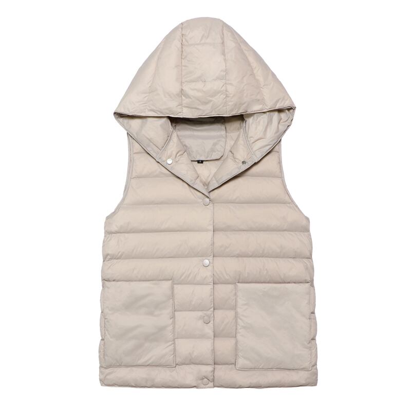 春 秋 レディース ジャケット アウター ダウンジャケット ノースリーブ フード付き カジュアル シンプル アプリコット かわいい おしゃれ 韓国 きれいめ プチプラ FA-9-55 | dress_sugar_moon