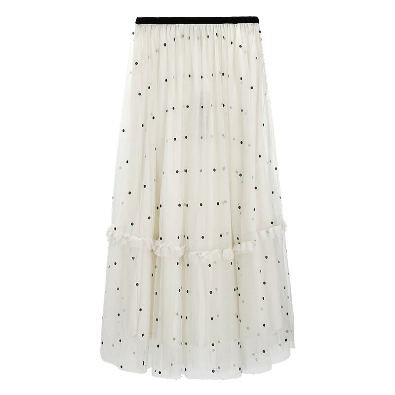 秋 冬 レディース スカート ボトムス ロングスカート ドット柄 水玉 ベージュ ハイウエスト ロングスカート かわいい おしゃれ 韓国 きれいめ プチプラ FA-9-91 | dress_sugar_moon
