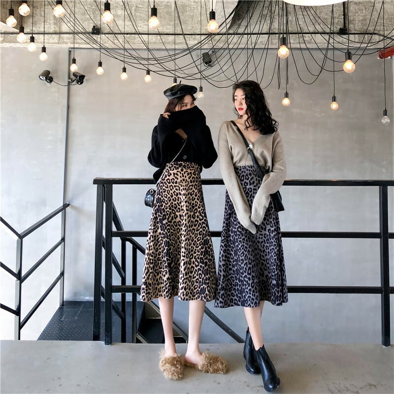 秋 冬 レディース スカート ボトムス ロングスカート レオパード柄 ヒョウ柄 レトロ ハイウエスト 原宿系 かわいい おしゃれ 韓国 きれいめ プチプラ FA-9-108 | dress_sugar_moon