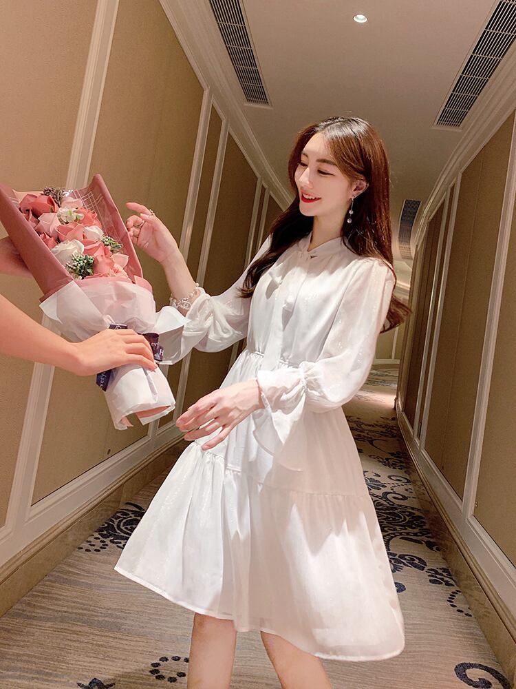 秋 冬 レディース ワンピース 長袖 ロングワンピース ホワイト 白 純白 シフォン ハイウエスト かわいい おしゃれ 韓国 きれいめ プチプラ FA-9-174 | dress_sugar_moon